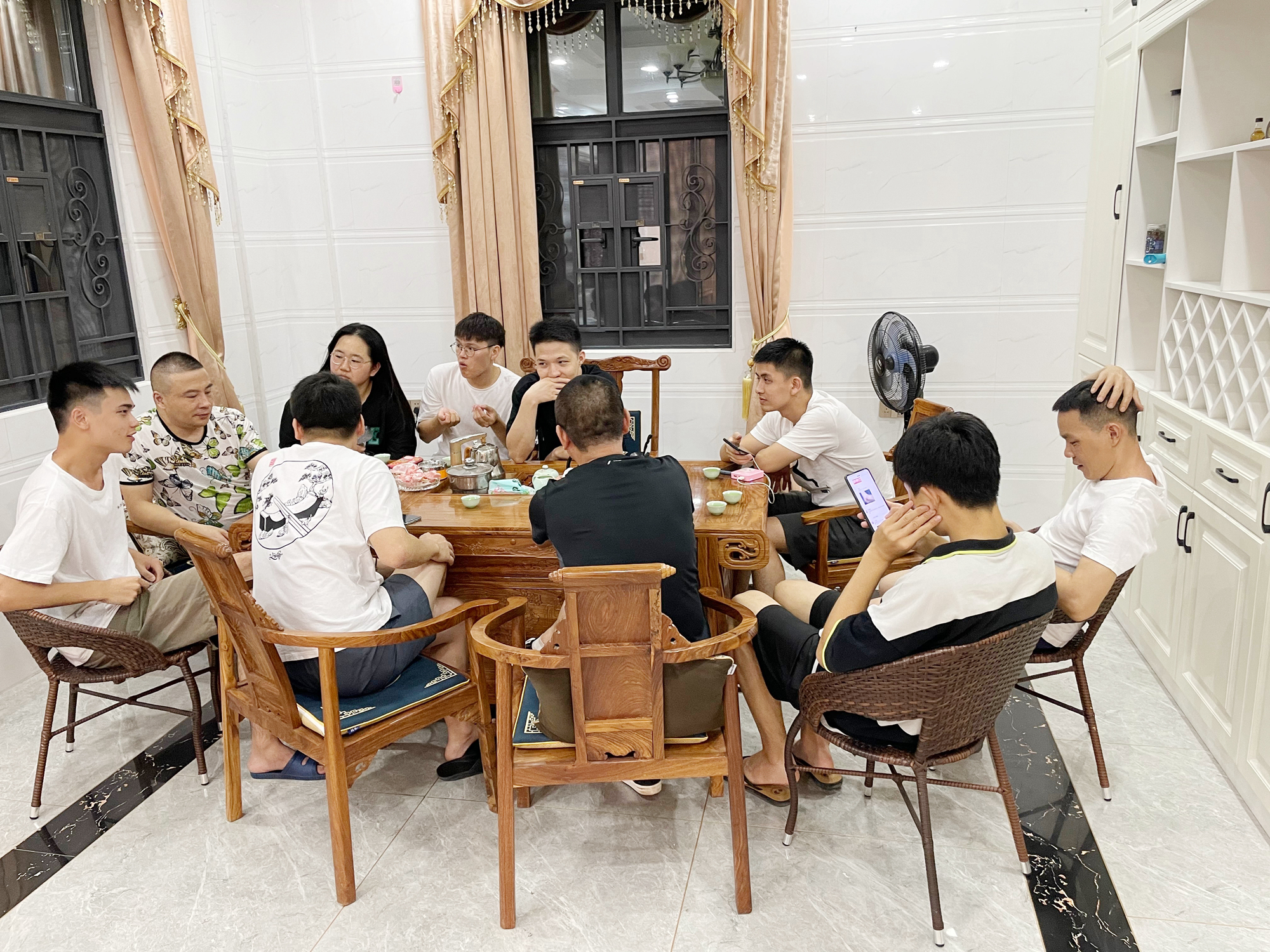 我們擁有一個大大的別墅房子。那里有懸空吊頂?shù)乃簟⒊领o古樸的茶桌,還有盡情搖擺的KTV和尚未踏足的棋牌室。燈光流動,大家敞開心扉,或深情吟唱,或靜靜聆聽,或吃茶談心聊工作,因為一切都有,所以一切都可!