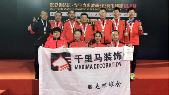 千里馬羽毛球會勇奪“2017道達爾李寧李永波杯3v3羽毛球賽世界紀錄挑戰賽”男團35歲組和混團35歲組亞軍,2017賽季完美收官