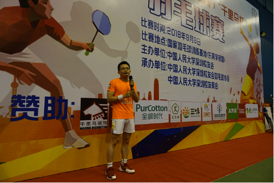 2018年9月8日以“羽樂共享,校友情真”為主題的第四屆人大校友(深圳)“千里馬杯羽毛球賽”在深圳東莞李永波學校開賽,參加本次聯(lián)誼賽的一共有十三支隊伍,分別是EMBA隊、商學院隊、福建福磚隊、88去哪兒隊、五湖四海隊、無影腳隊、人參隊、商會隊、捉妖隊、勞人混個獎隊等。